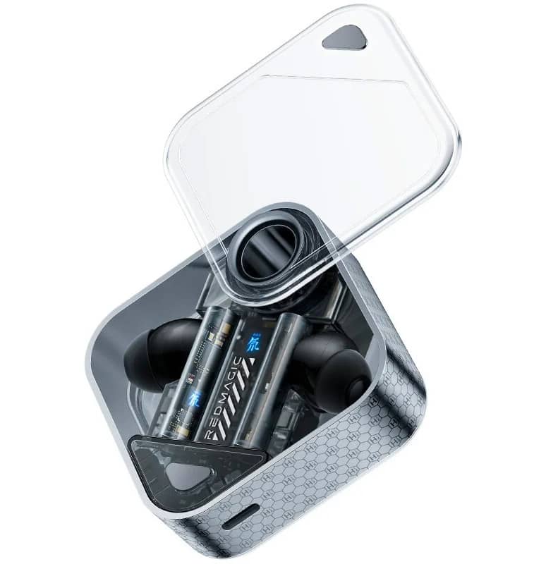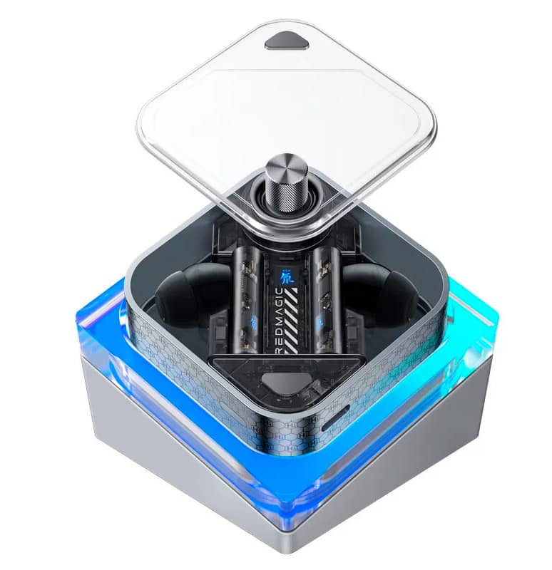 RGB-підсвічування є як на самому кейсі, так і на ніжках гарнітур. Налаштовувати колір не можна — логотип Red Magic буде переливатись усіма відтінками веселки. Ці навушники дуже нагадують Nothing Ear (1). У обох моделей схожа форма та зовнішній вигляд.