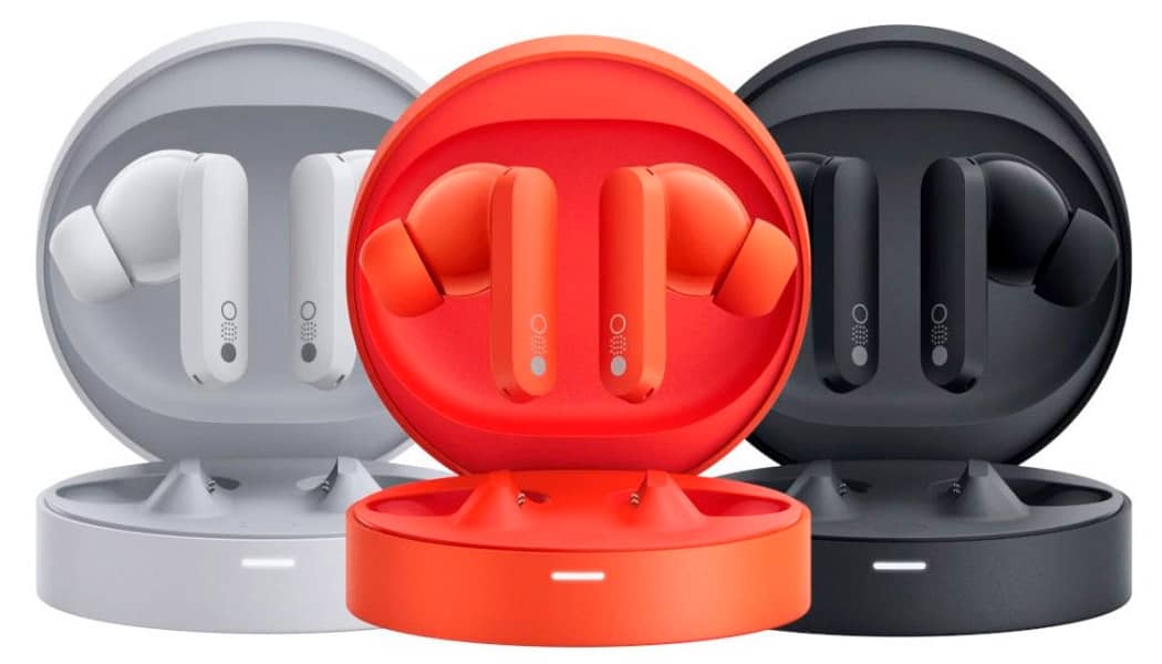 Гарнітура доступна у трьох кольорах — сірому, чорному та яскраво-оранжевому. Прозорого варіанта немає. Футляр у них круглий і схожий на шайбу.