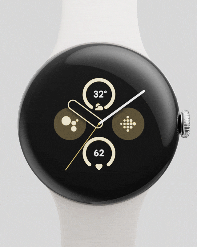 Pixel Watch 2 отримав 1.6-дюймовий AMOLED-екран з роздільною здатністю 384 x 384 пікселя та режимом завжди включеного дисплея. Пристрій підтримує моніторинг серцевого ритму, має датчик SpO2 та трекер сну. Сенсор серцевого ритму оновлений з одноколійного на багатоколійний для більш точних результатів відстеження.