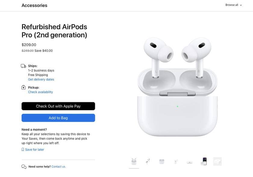 Відновлені AirPods Pro 2 (з роз'ємом Lightning) вже доступні для придбання в США та Канаді за ціною $209, що на $40 дешевше за нову модель.