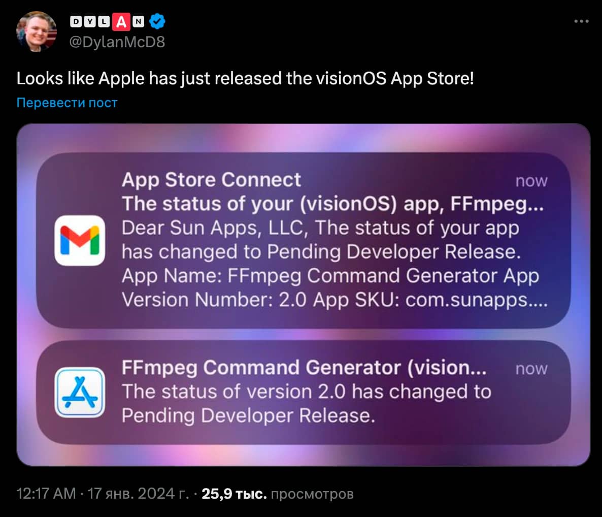 Тепер розробники мають можливість публікувати у магазині свої програми. Користувачі поки що не мають доступу до App Store для Vision Pro, оскільки гарнітура ще не надійшла у продаж. Проте журналісти, які почали отримувати доступ до нового продукту, матимуть змогу спробувати сторонні програми.