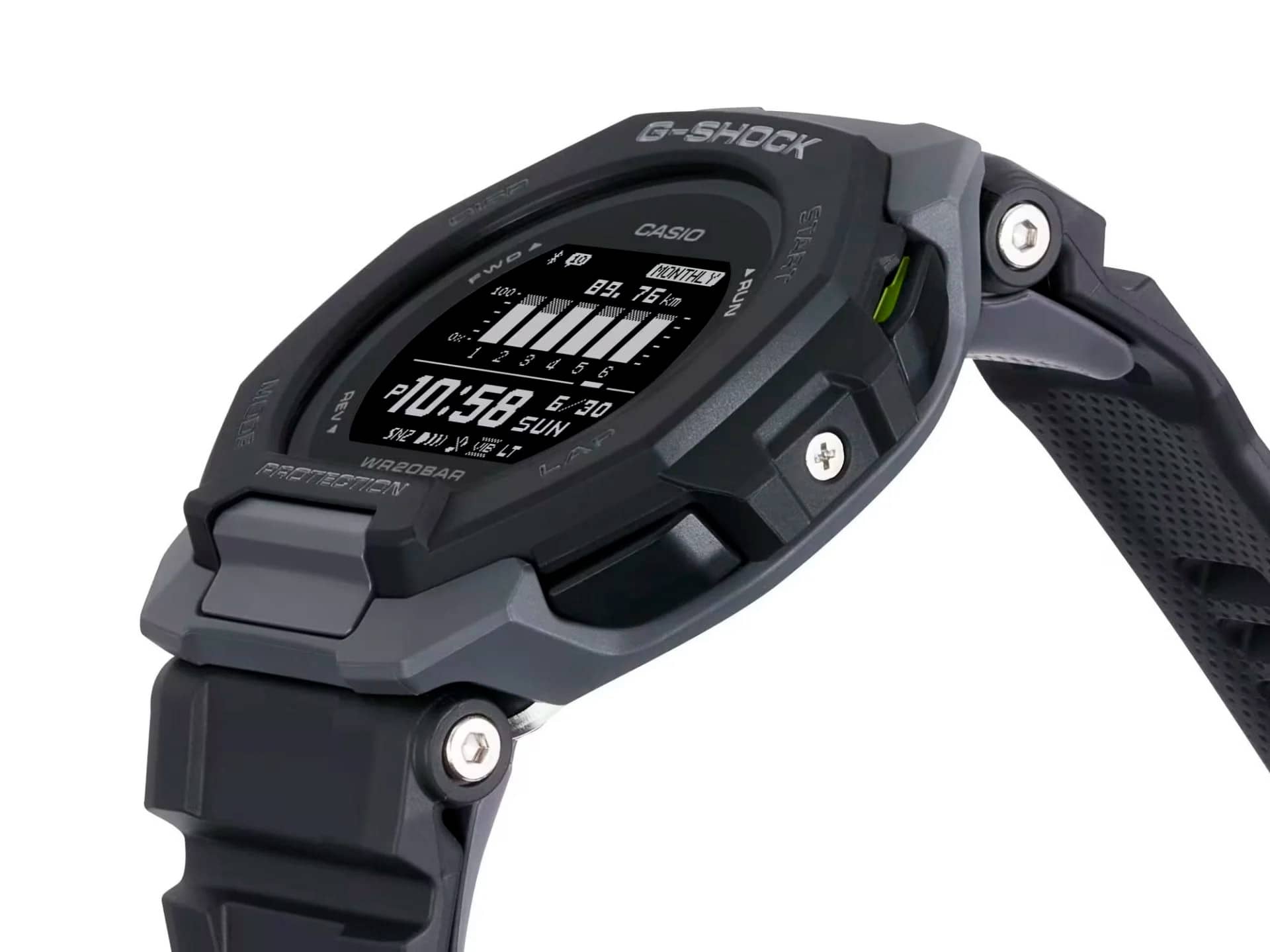 Casio G-SHOCK GBD-300 має подвійну безелеву конструкцію, яка захищає основні компоненти годинника, забезпечуючи їх стійкість до сильних ударів. Годинник легкий, удароміцний і оснащений висококонтрастним LCD-дисплеєм, який чітко відображає час, дату і будильники навіть при яскравому освітленні.