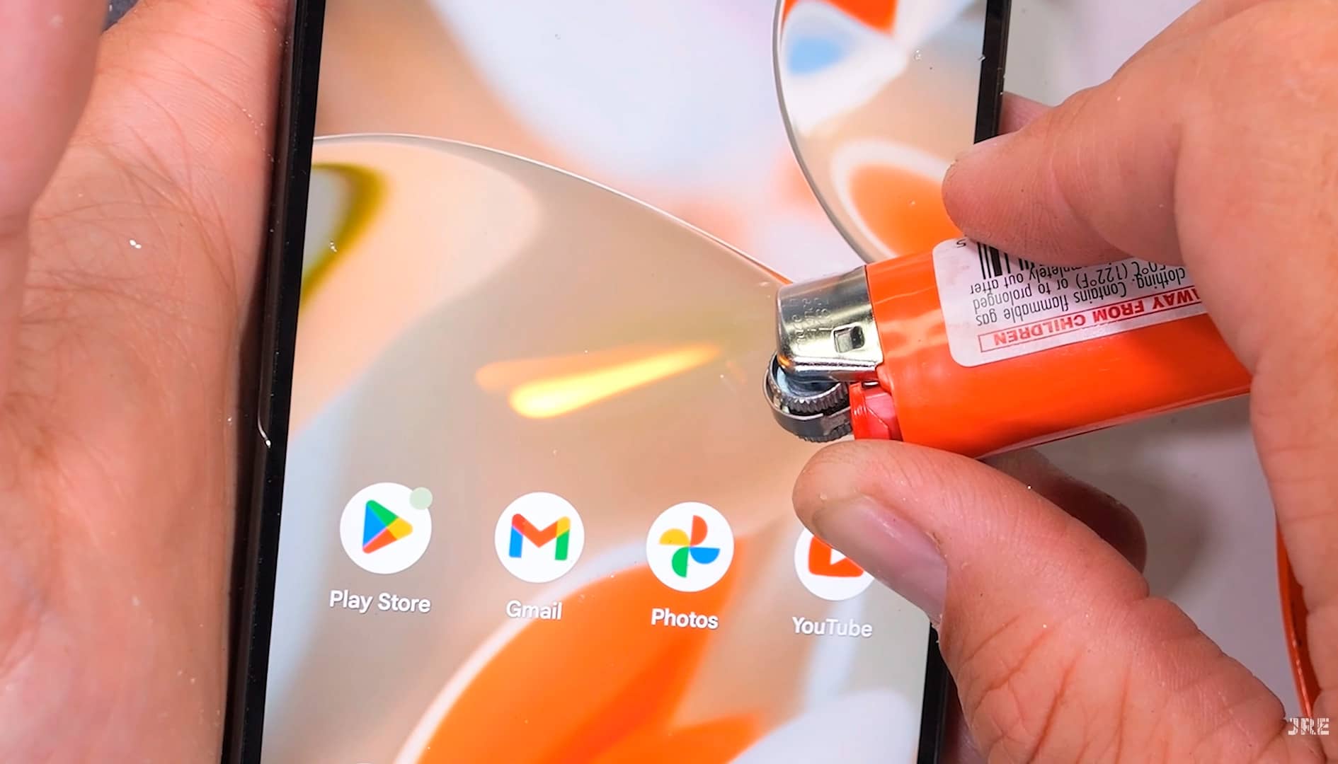Екран смартфона витримав тривале нагрівання запальничкою.