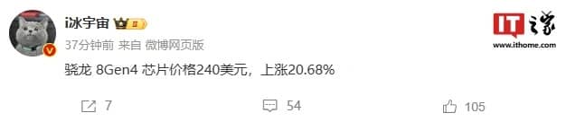 Як повідомив перевірений інсайдер під ніком Ice Universe на сторінці Weibo, новий флагманський процесор Qualcomm Snapdragon 8 Gen 4 подорожчає до 240 доларів. Порівняно з актуальним топом — Snapdragon 8 Gen 3 — це збільшення вартості чипа на 20,68%. Саме тому всі смартфони у преміум-сегменті, які вендори представлять у 2024—2025 роках, зростуть у ціні мінімум на 30-40 доларів.