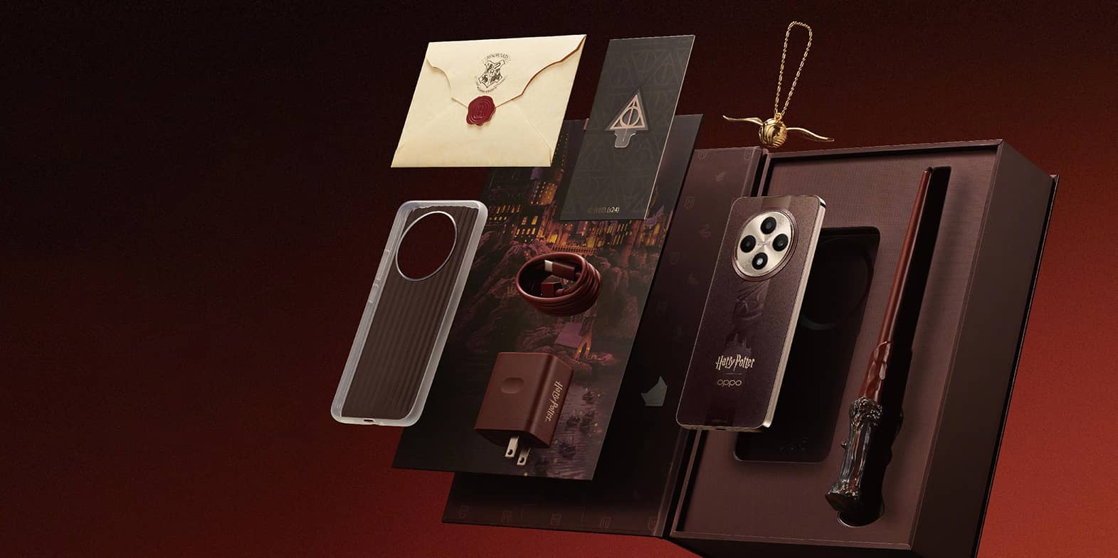 Перше, що побачать покупці Oppo Reno 12F Harry Potter Edition — це упаковка у вигляді книги заклинань. Усередині знаходиться смартфон із вигравіруваною на задній панелі емблемою школи чаклунства.