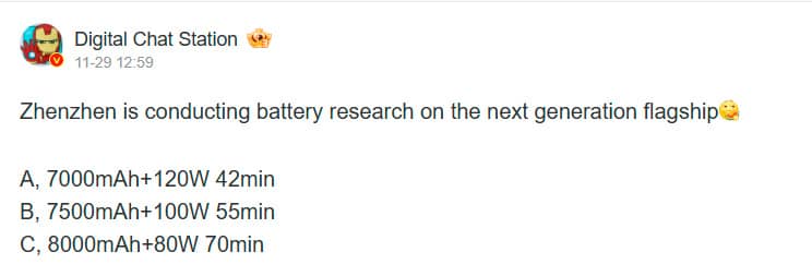 Варіант на 7000 мАг та зарядкою 120 Вт забезпечить швидку зарядку за 42 хвилини.