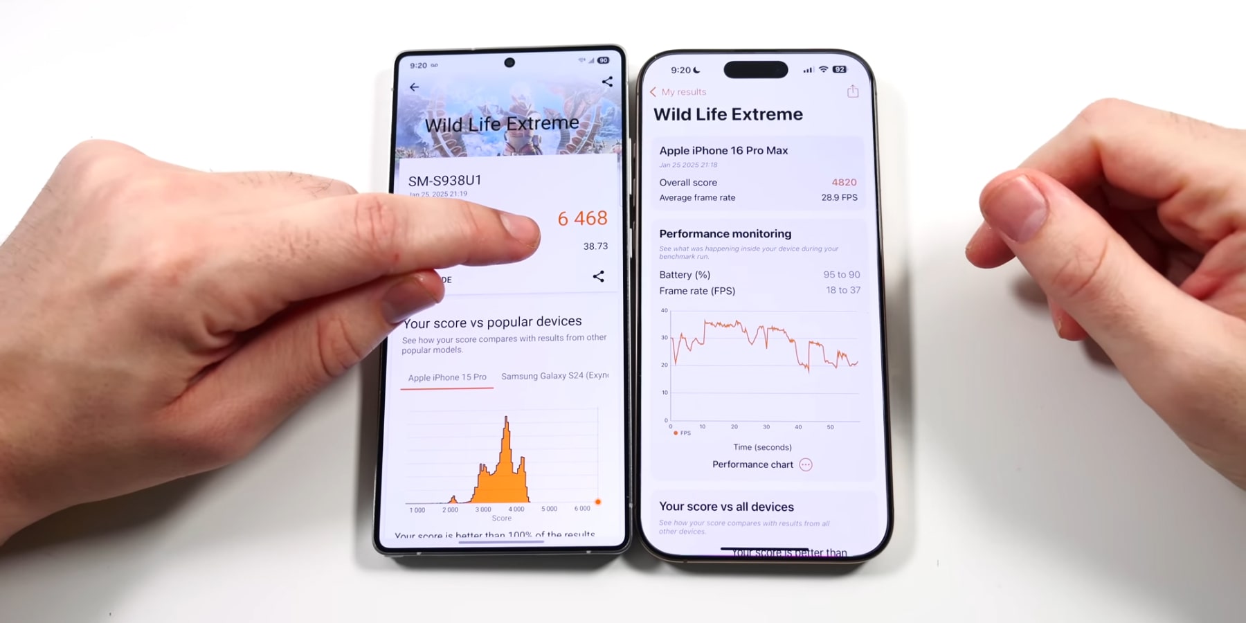 У бенчмарку 3DMark Galaxy S25 Ultra набрав 6468 балів, а iPhone — 4820. Це, в тому числі відбилося на частоті кадрів — смартфон Samsung виявився швидше на 10 FPS.