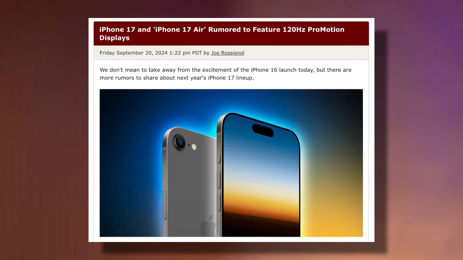 Дисплей із частотою оновлення 120 Гц. Він з'явиться вперше у звичайного iPhone 17 і iPhone 17 Air.