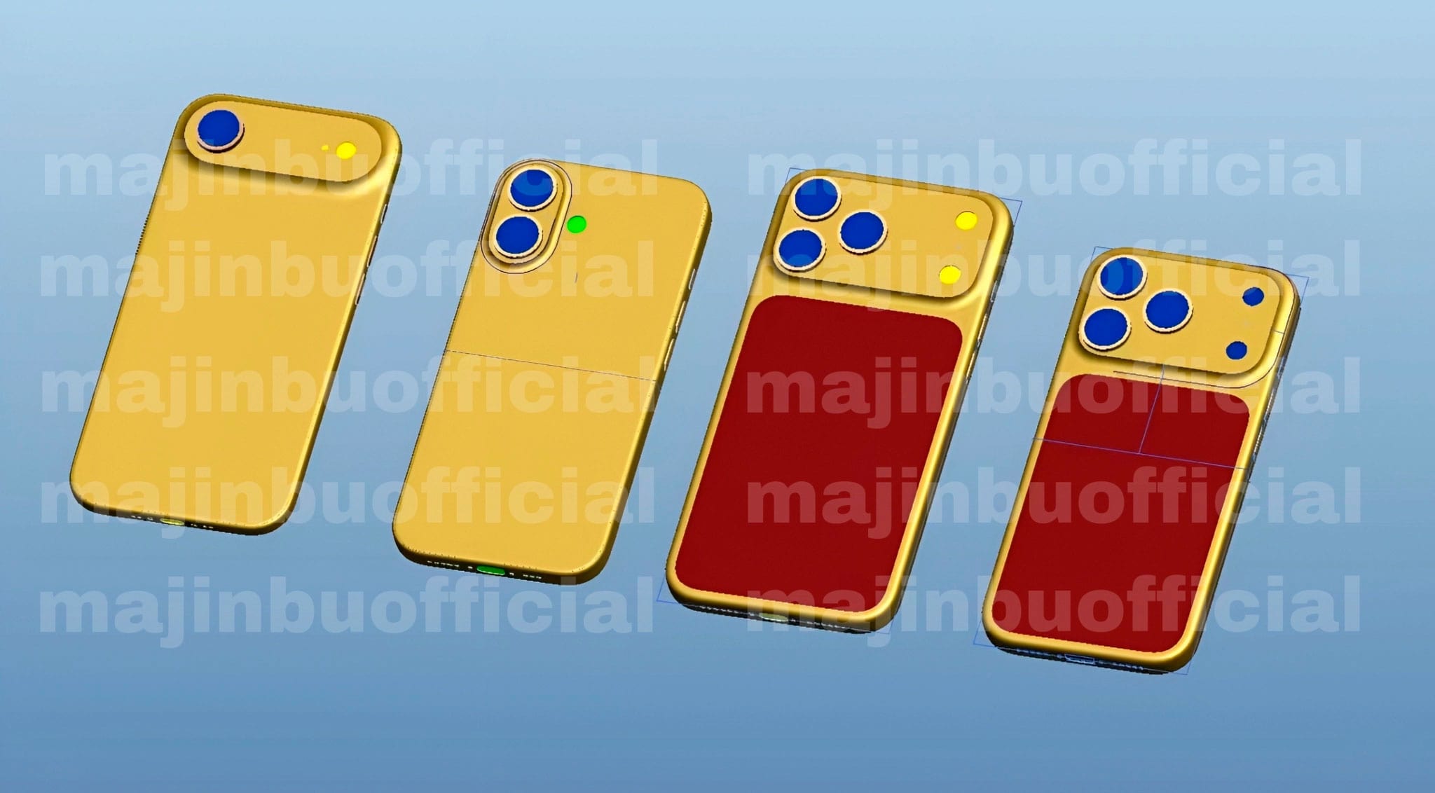 Усього буде чотири пристрої. Базовий iPhone 17, як уже повідомлялося, не отримає змін у дизайні, тоді як обидві «прошки» вийдуть із переробленим блоком камер. Він прямокутний, зі звичним розташуванням об'єктивів, але з перенесеними на правий край датчиком LiDAR та спалахом.