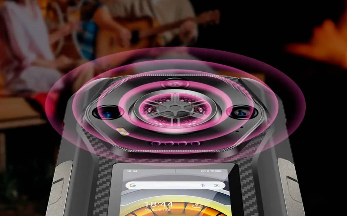 Камери оточують потужний динамік з гучністю до 118 дБ. Його діаметр — 28 мм, об'єм звукової камери — 9 куб. см, потужність — 4 Вт. Також передбачено RGB-підсвічування, яке змінює колір залежно від подій: дзвінок, повідомлення, заряджання тощо. Смартфон захищений за стандартами IP68 (вода та пил) та MIL-STD-810H (падіння, вібрації), орієнтований на використання в екстремальних умовах.