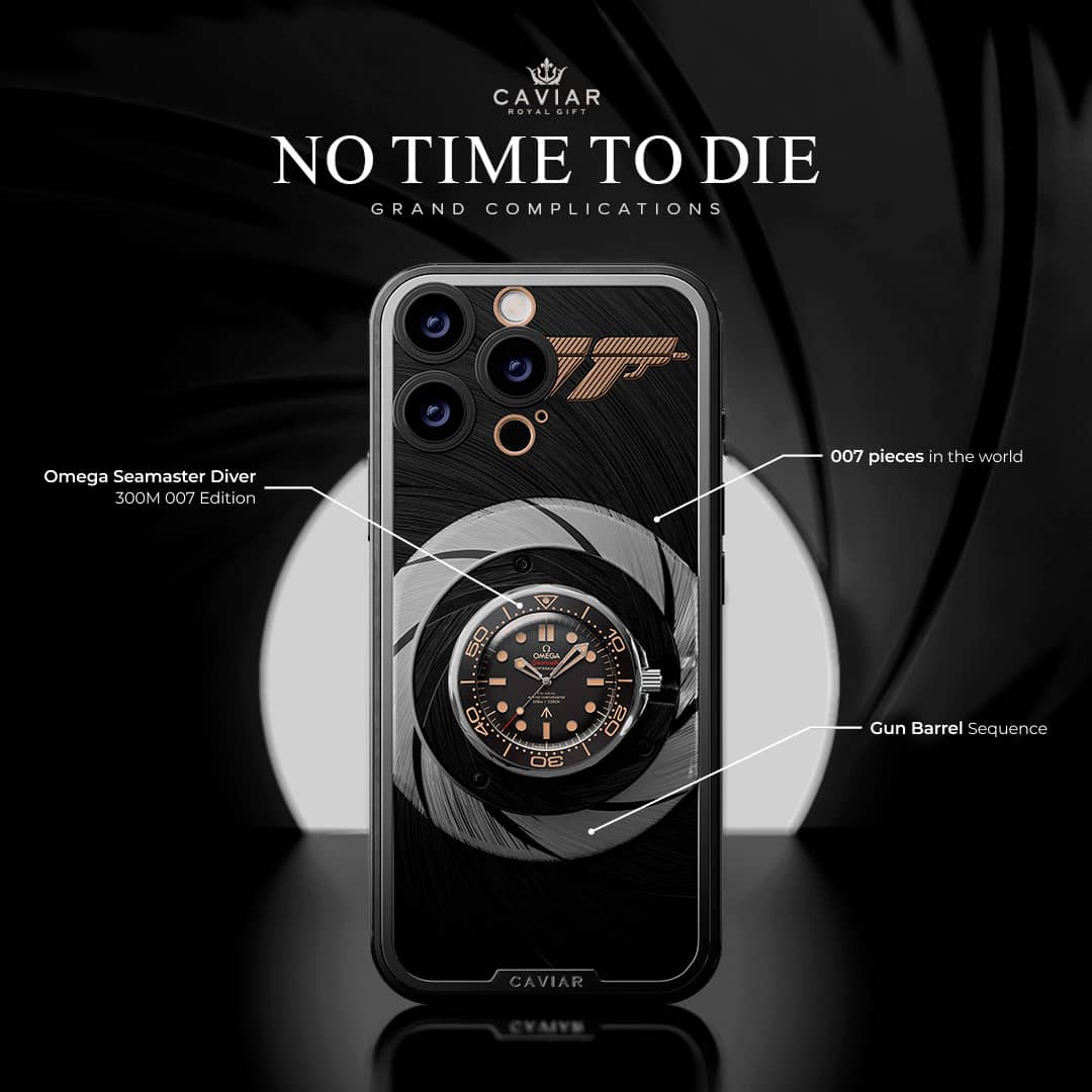 У Caviar повністю переробили задню панель iPhone, використовуючи титан авіаційного класу та вуглецеве волокно. У корпус пристрою вбудовано справжній механічний годинник Omega Seamaster — той самий, що носив Деніел Крейг у фільмі «Не час помирати». При цьому годинник залишається повністю функціональним: він підтримує ручний завод і захищений сапфіровим склом, не заважаючи використанню смартфона.