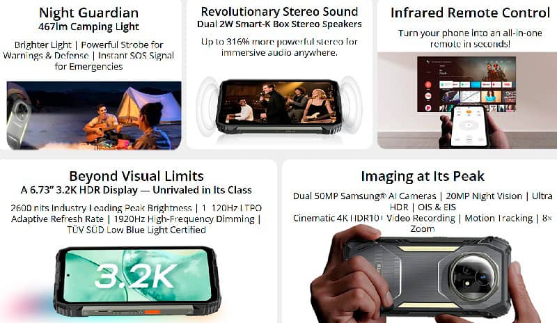 Новинка має 50-Мп фронтальну камеру, основну камеру з головним 50-Мп датчиком, 20-Мп датчик з нічним режимом. Для захисту даних використовуються сканер відбитків пальців та Face ID. Підтримуються всі актуальні стандарти зв'язку: 5G, Wi-Fi, Bluetooth 5.4, а також глобальні навігаційні системи — GPS, Beidou, Galileo. Є два SIM-слоти та окремий роз'єм для карти пам'яті.