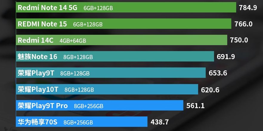 У найдоступнішій категорії перемогу здобули моделі Redmi Note 14 5G на базі Dimensity 7025 Ultra, Redmi Note 15 зі Snapdragon 6 Gen 3 та Redmi 14C із процесором Helio G81 Ultra. Усі три пристрої отримали високі оцінки за співвідношення ціни та можливостей.