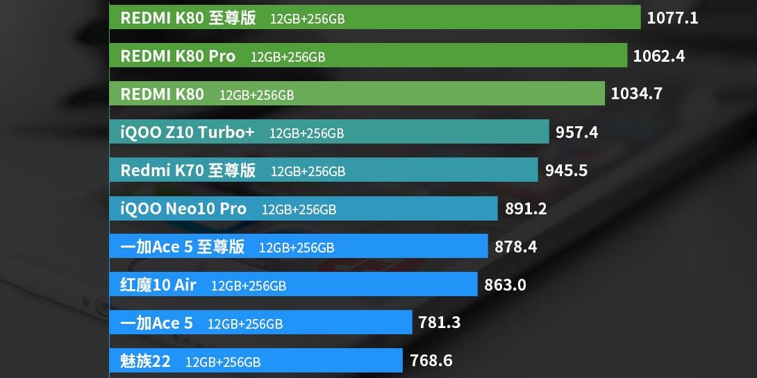 У цьому діапазоні переміг Redmi K80 Extreme Edition із процесором Dimensity 9400+. Срібло та бронзу забрали Redmi K80 Pro на Snapdragon 8 Elite та Redmi K80 зі Snapdragon 8 Gen 3.
