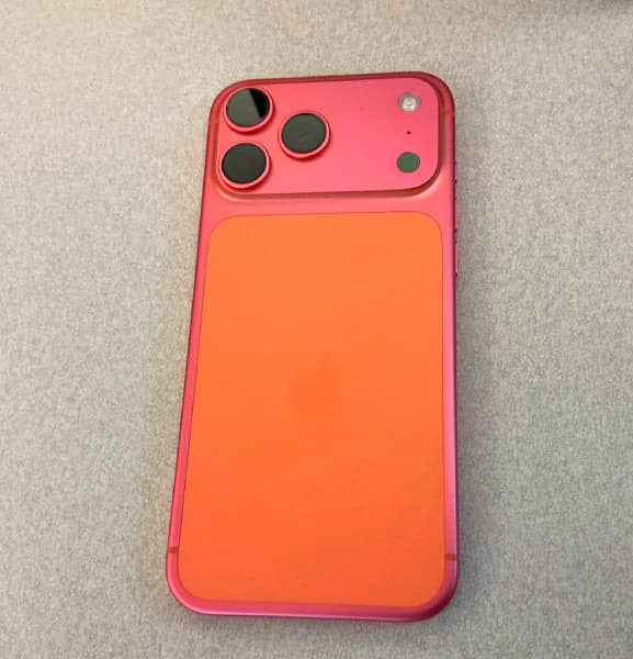 На Reddit з'явилися знімки моделі iPhone 17 Pro Max у кольорі Cosmic Orange, на яких помаранчевий алюмінієвий корпус помітно вицвів, набуваючи рожевого або золотисто-рожевого відтінку. При цьому матове скло у центрі задньої панелі зберігає свій початковий колір.
