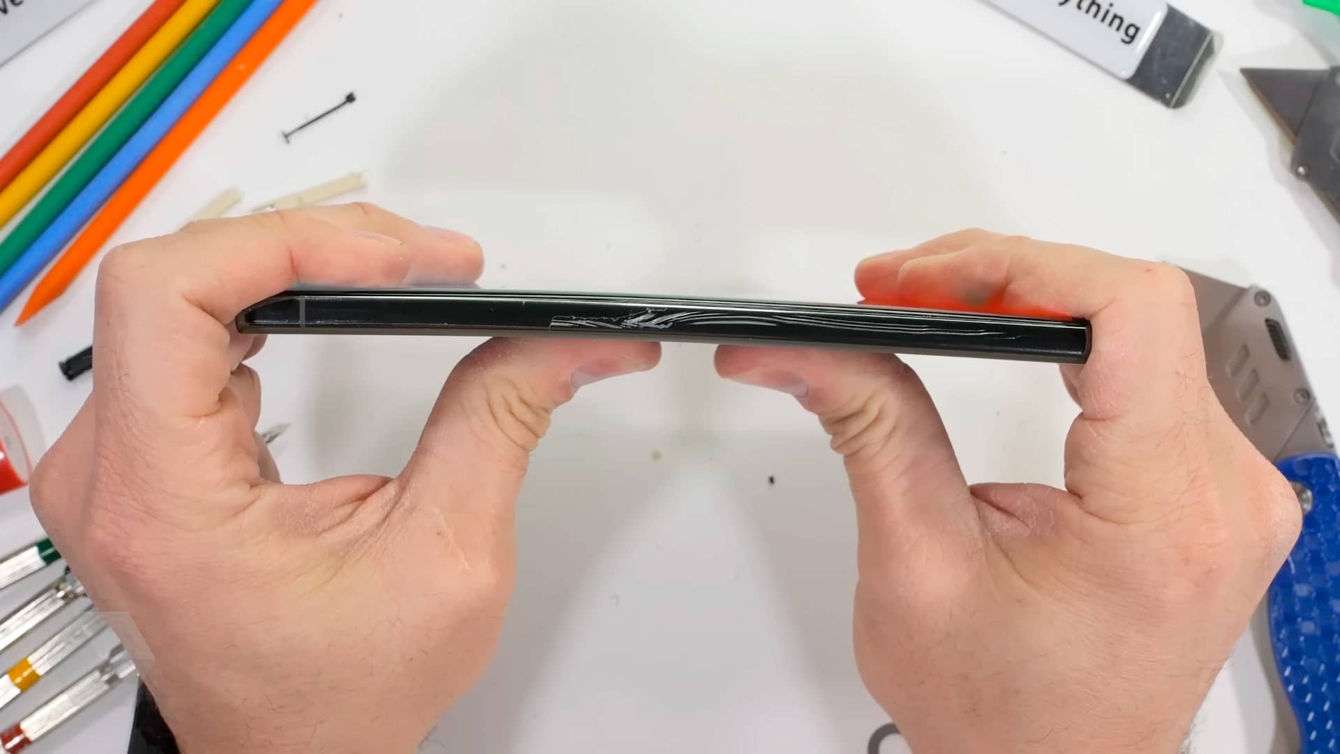 Нельсону вдалося без особливих зусиль зламати перо S Pen і отримати доступ до його нутрощів. А ось залишити сліди на екрані смартфона під впливом вогню запальнички не вдалося. Galaxy S23 Ultra пережив і один із головних тестів JerryRigEverything на злам корпусу руками.