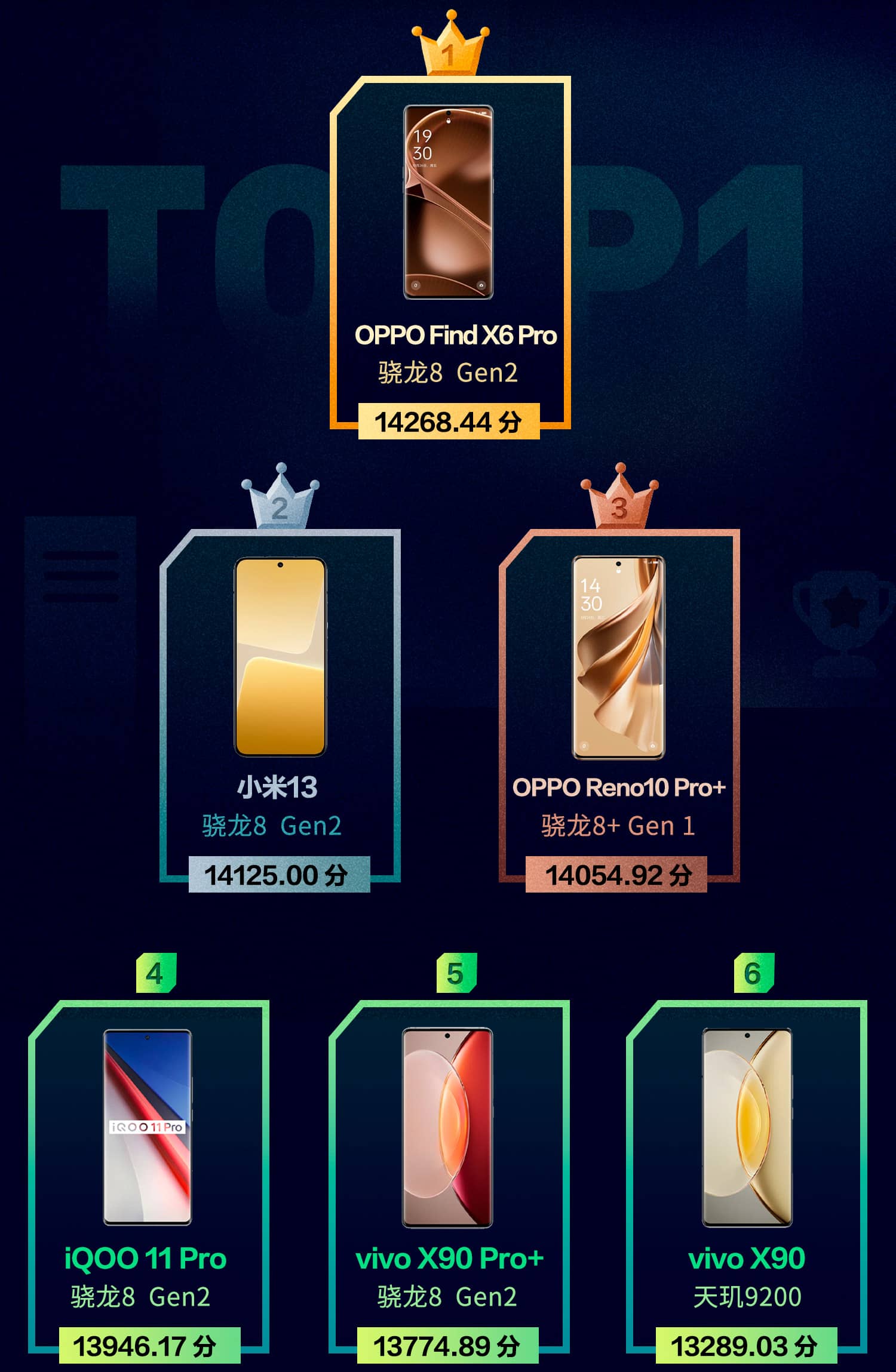 1. Oppo Find X6 Pro — 14 268,44 бала (Snapdragon 8 Gen 2);