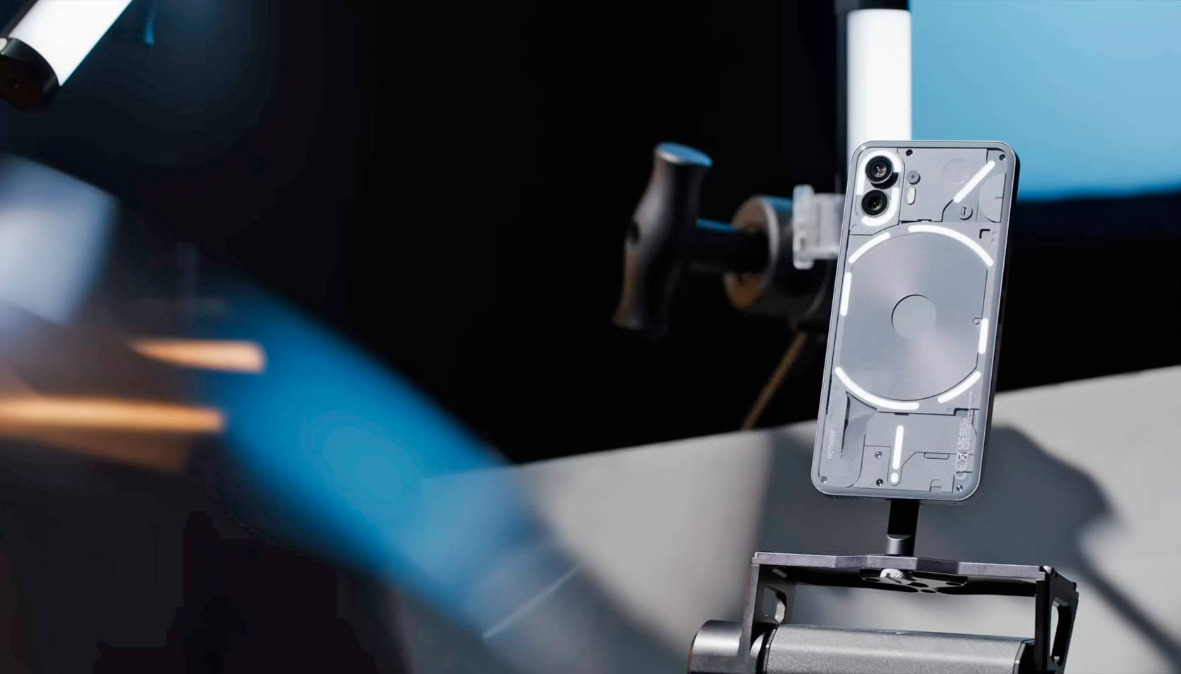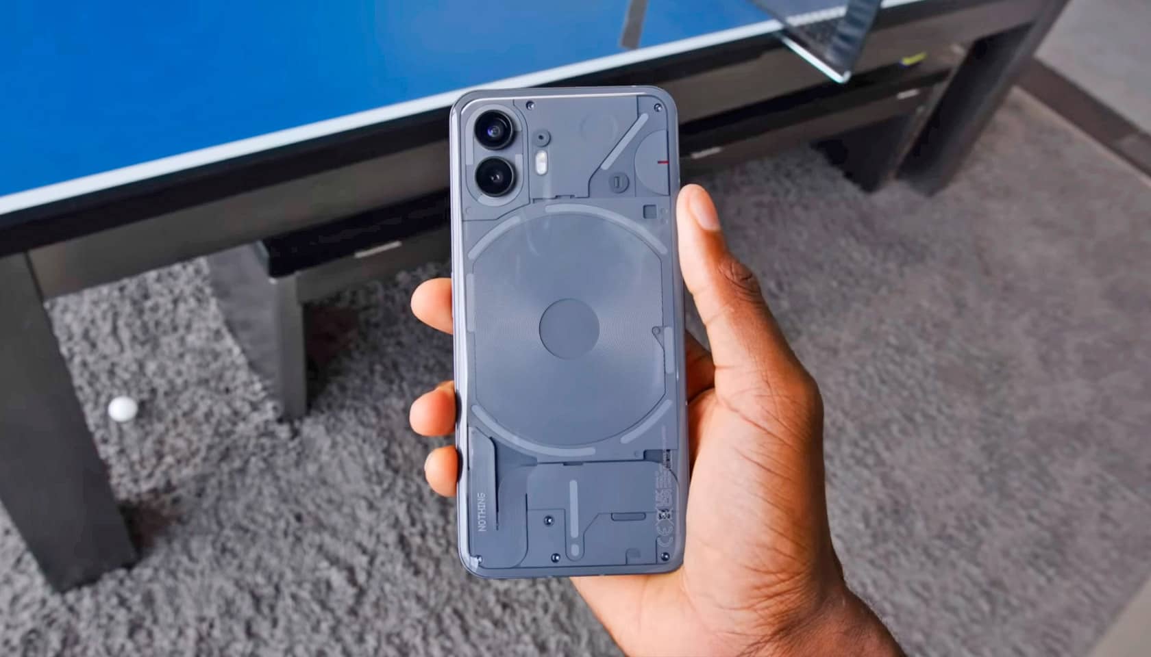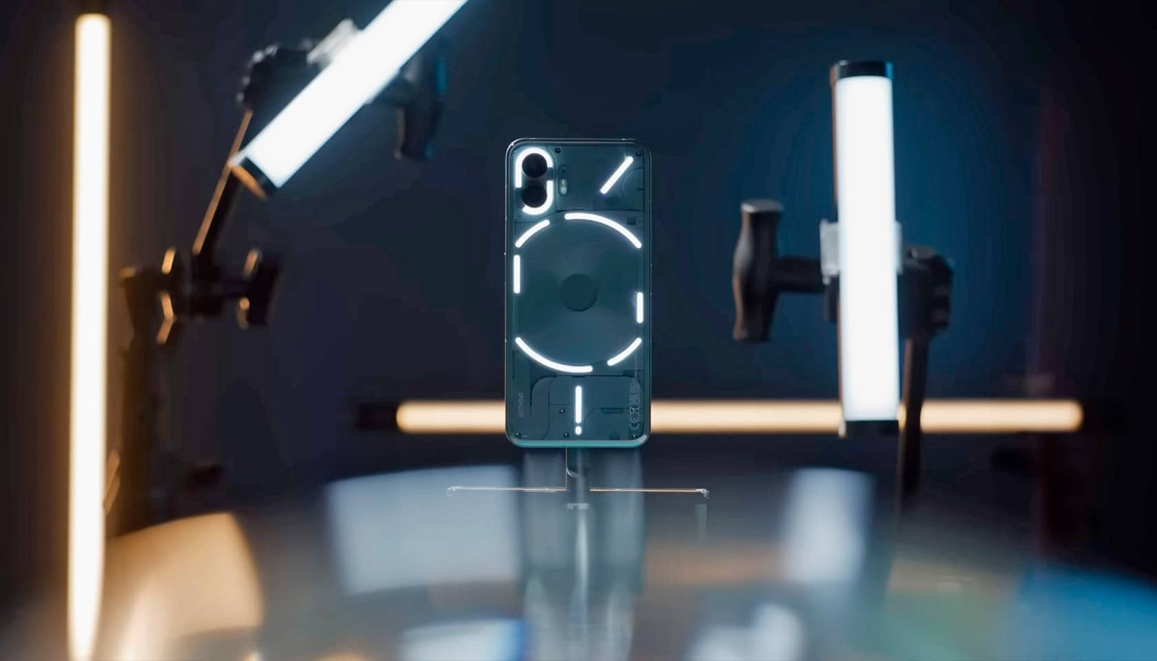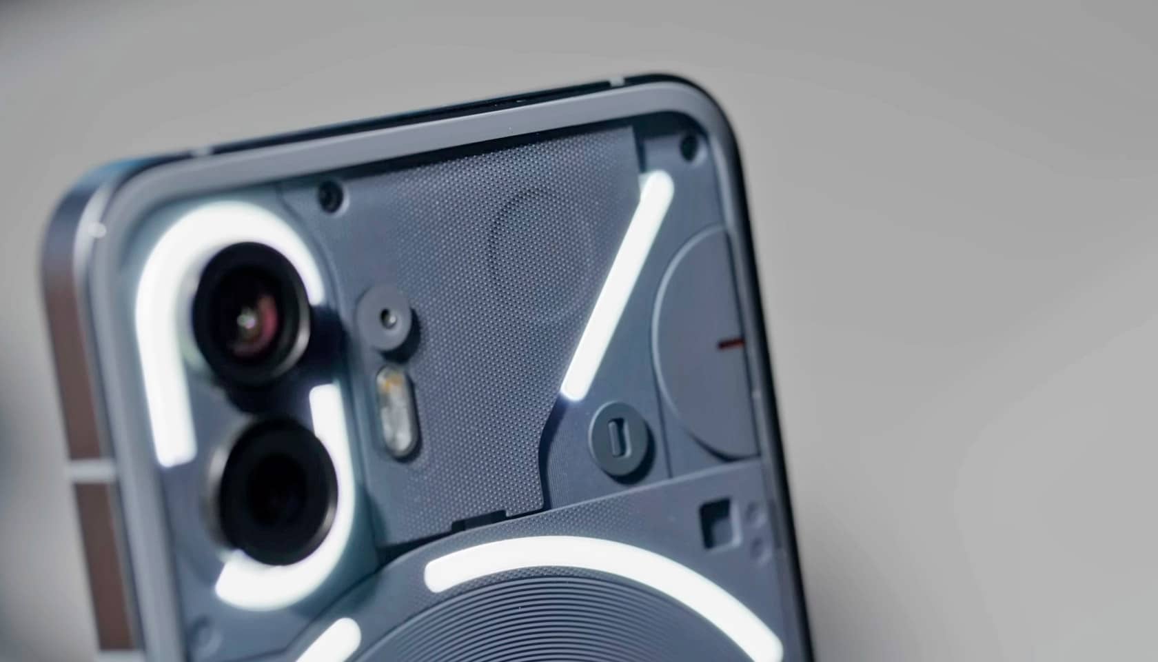 Зовні Phone (2) виявився дуже схожим на Phone (1): та ж форма корпусу, металева рамка, дві камери в кутку ззаду, напівпрозора спинка та фірмове LED-підсвічування.