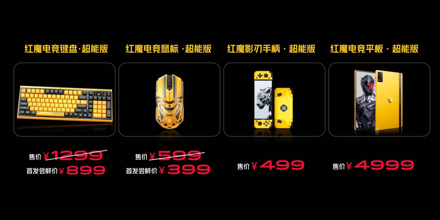 Red Magic 8S Pro+ також можна буде придбати у версії Bumblebee Super Warriors. Вона вийде у конфігурації 16/512 ГБ за ціною 6499 юанів (~$896). У такому ж дизайні є фірмові аксесуари Red Magic.