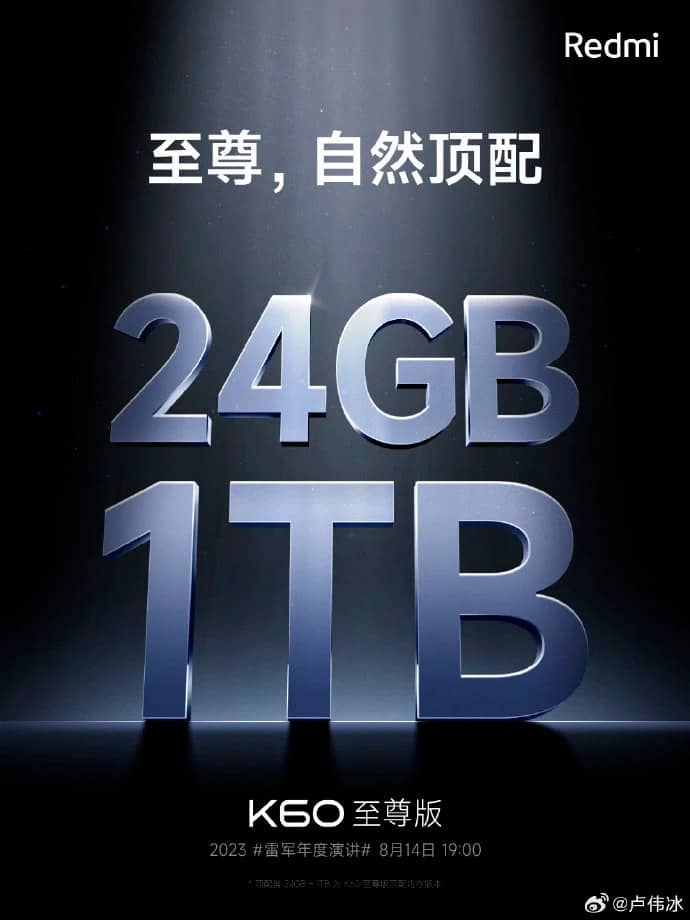 Redmi K60 Extreme Edtion – другий смартфон на ринку, який оснащений 24 ГБ оперативної та 1 ТБ постійної пам'яті. Першим став Red Magic 8S Pro+, а 16 серпня OnePlus представить Ace 2 Pro з аналогічними характеристиками.