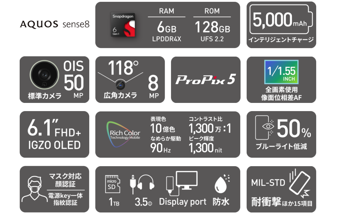 - Екран: 6,1 дюйма, IGZO OLED, 2432 х 1080 пікселів, 90 Гц, 1300 ніт;