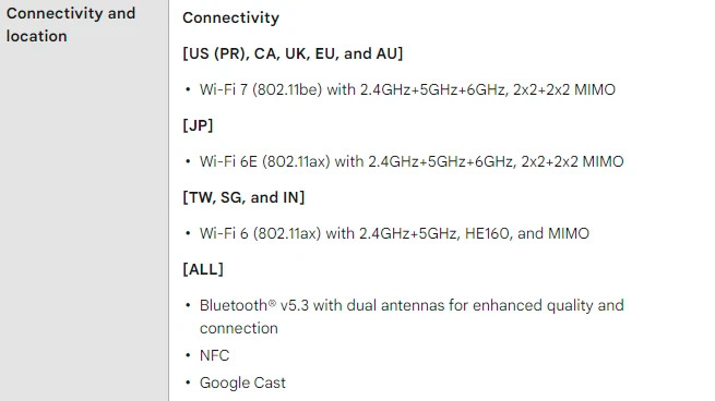 Пристрої для японського ринку оснастили не новим Wi-Fi 6E. Тайванські, сінгапурські та індійські Google Pixel 8 отримали лише Wi-Fi 6, який працює на частоті 5 ГГц.