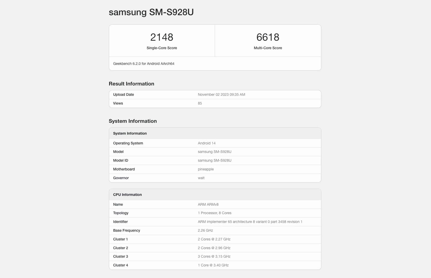 Судячи з бенчмарку, топова модель буде оснащена розігнаною версією чіпсета Snapdragon 8 Gen 3 із припискою for Galaxy. Така ж схема застосовувалася у Galaxy S23 зі Snapdragon 8 Gen 2 for Galaxy.