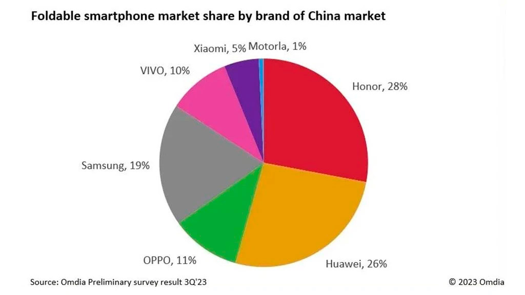 Згідно з опублікованими даними, компанії належить 28% ринку — це 1,7 млн проданих пристроїв. Зростанню продажів посприяв Honor Magic V2, на який у третьому кварталі припало 25% продажів, всього за чотири місяці було продано понад 800 тисяч одиниць моделі V2.