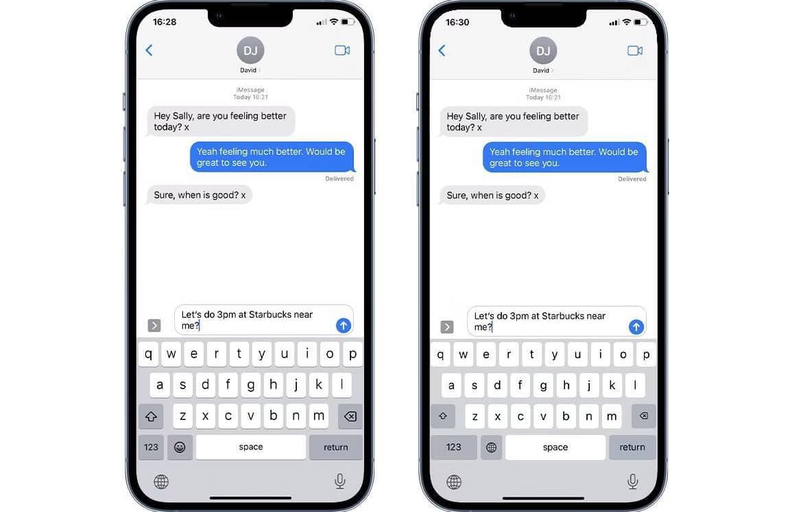 Клавіатура iPhone за замовчуванням (ліворуч) та «заражена» клавіатура з кейлоггером (праворуч).