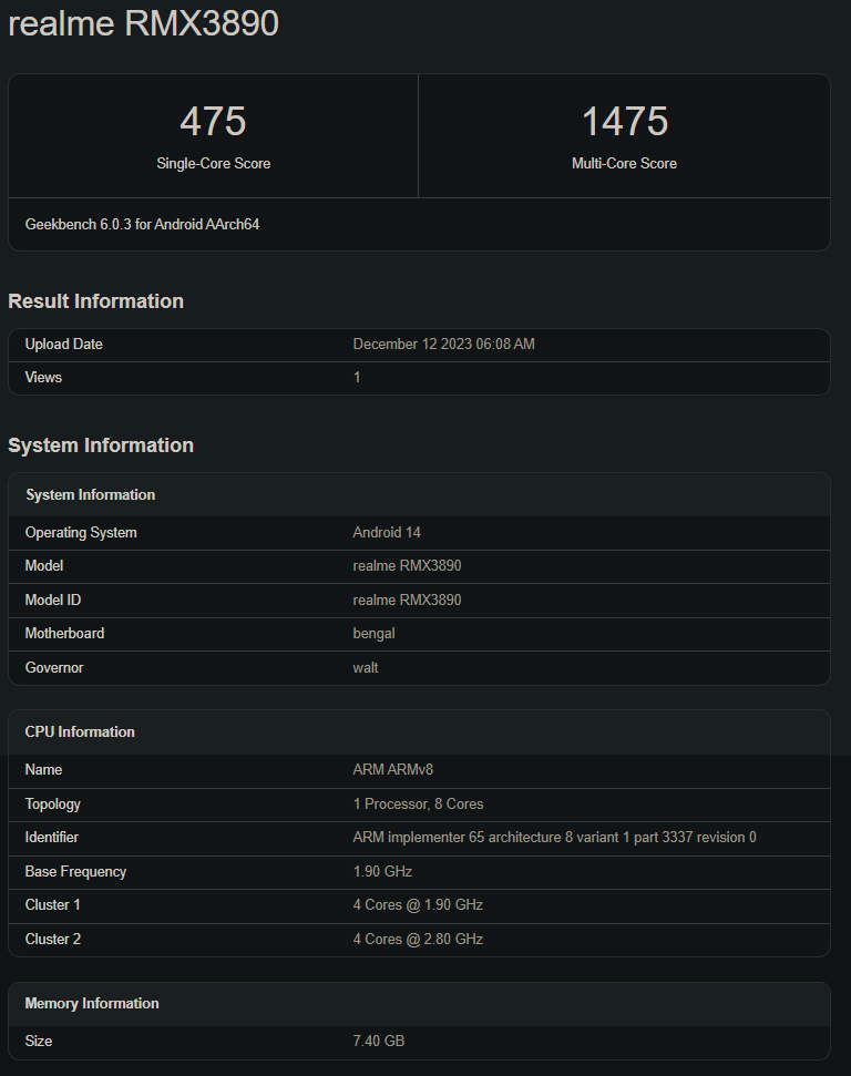 Керує майбутньою новинкою операційна система Android 14. У одноядерному тесті смартфон набрав 475 балів, а багатоядерному — 1475 балів.