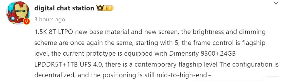 Digital Chat Station пише, що новий флагман поставлятиметься з OLED-панеллю 8T LTPO і надтонкими рамками навколо неї. Роздільна здатність екрана буде 1,5K. Пікова яскравість може досягати 5000 ніт.