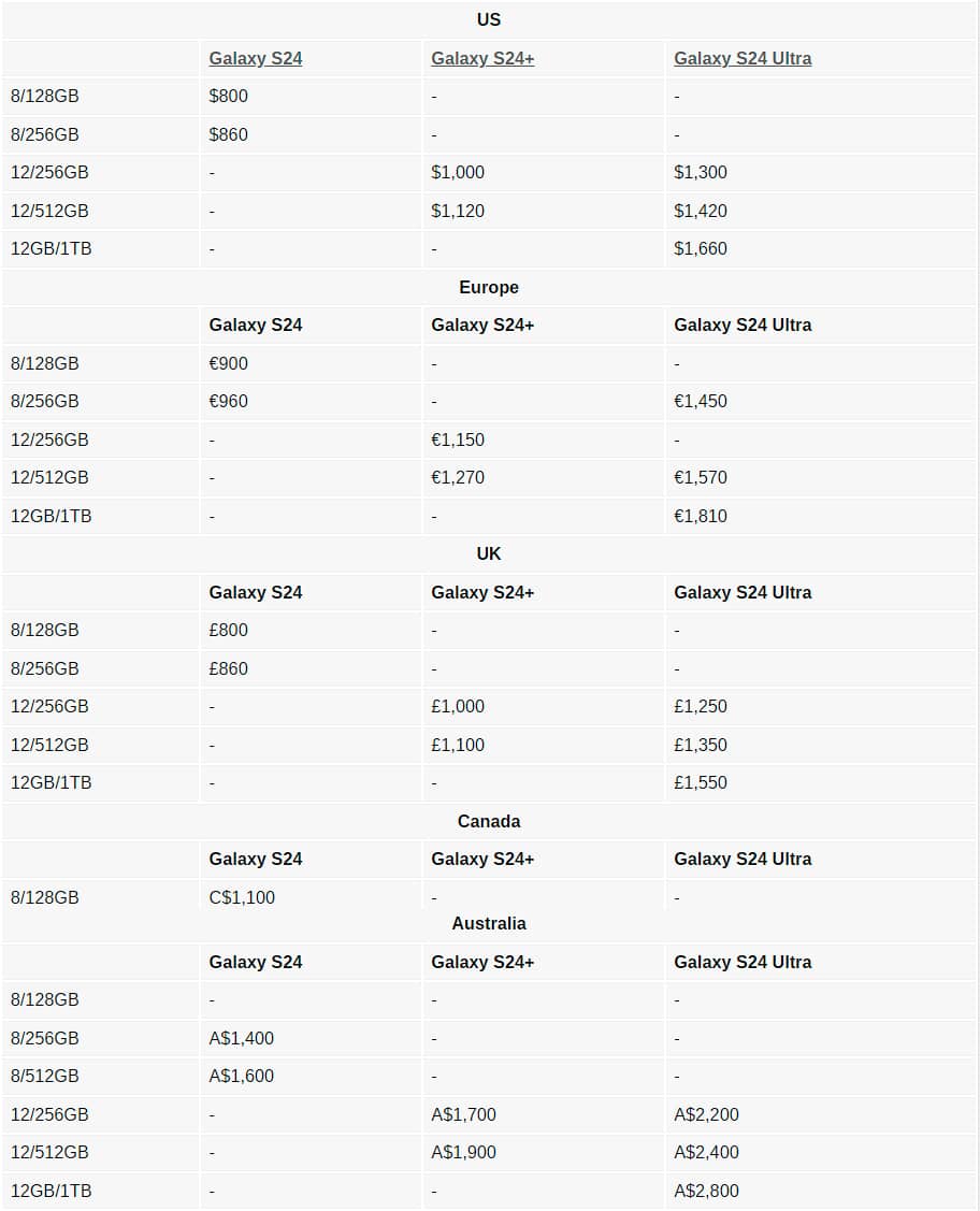 Смартфони Galaxy S24, Galaxy S24+ та Galaxy S24 Ultra вже доступні в багатьох країнах світу в чорному, сірому, фіолетовому та жовтому кольорах. Крім того, Samsung пропонує пристрої на своєму веб-сайті у трьох ексклюзивних кольорах — помаранчевому, зеленому та синьому.