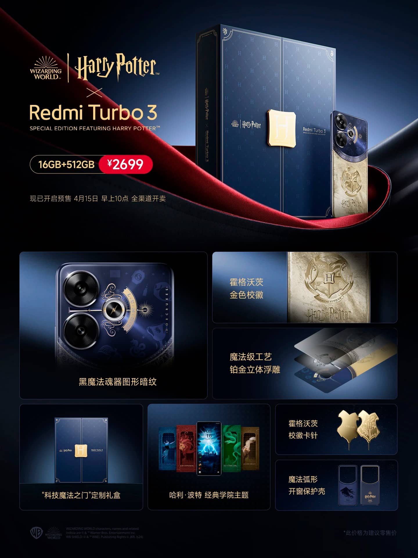 Redmi Turbo 3 Harry Potter Edition виконаний у дещо іншому стилі, і комплект постачання телефону теж інший. Ціна — 2699 юанів (~$373) за версію 16/512 ГБ.