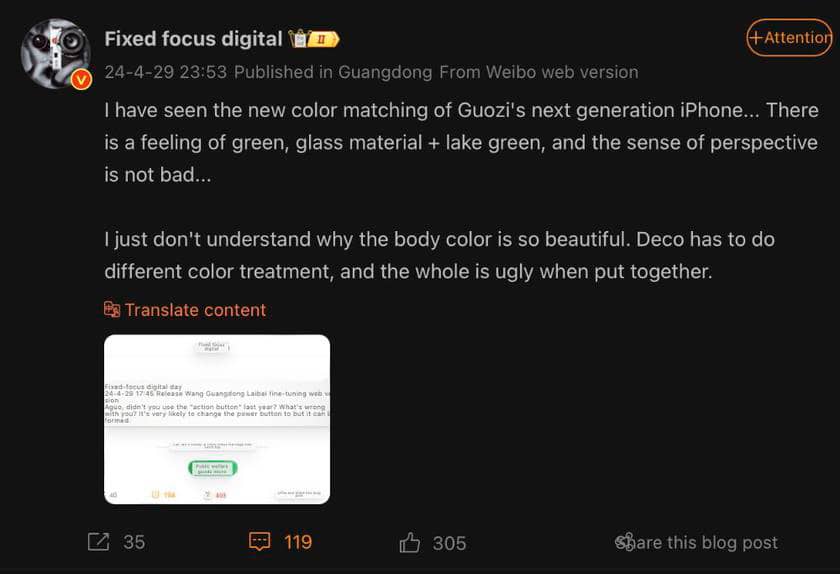 Новий слух з'явився в обліковому записі Fixed Focus Digital. На жаль, зараз неясно, який саме відтінок вибере Apple. За досвідом минулих років, можна припустити, що купертинівці не використовуватимуть забарвлення, в якому був доступний iPhone 13. Швидше за все, компанія підбере якийсь новий колір.