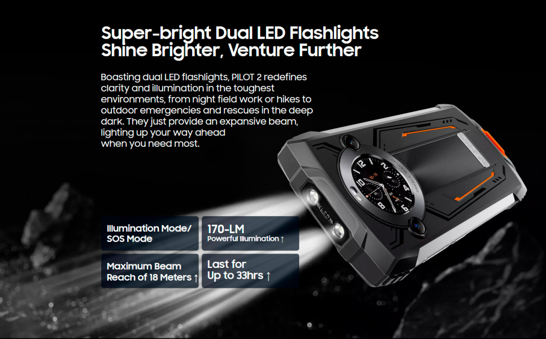 Oscal Pilot 2 має основну камеру на 50 Мп із сенсором Samsung ISOCELL GN5, ультра-ширококутну камеру зі світлодіодним спалахом з яскравістю 170 люмен та дальністю освітлення до 18 метрів. Важить пристрій 368 г та має товщину 17 мм.