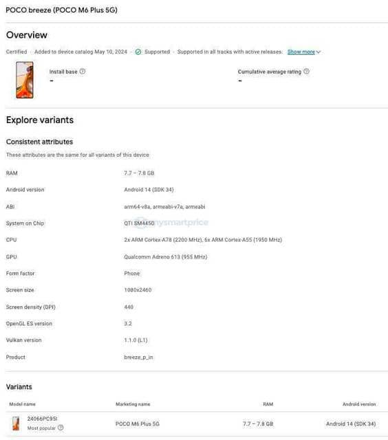 Згідно з джерелом, Poco M6 Plus 5G отримав модельний номер 24065PC95I, який містить важливу інформацію. Цифра 24 вказує на поточний рік, а 06 — на червень, що передбачає проведення презентації смартфона вже цього місяця.