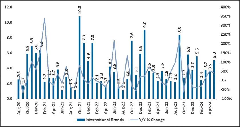 Згідно з даними Китайської академії інформаційно-комунікаційних технологій (CAICT), у травні 2024 року продаж iPhone збільшився на 44% порівняно з квітнем і на 40% порівняно з тим же періодом минулого року.