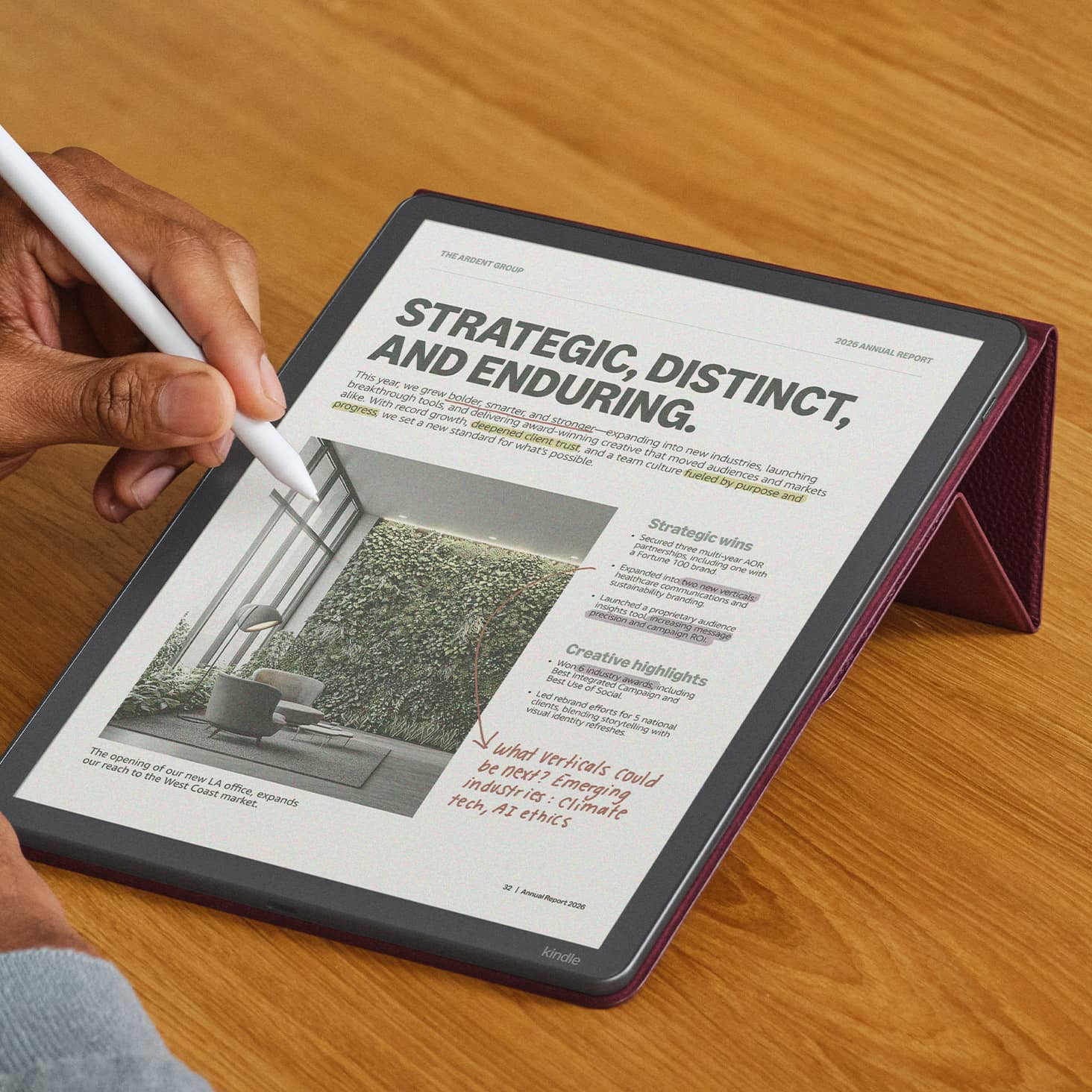 Особливий акцент компанія робить на кольоровій версії — Kindle Scribe Colorsoft. У ній застосовано нову технологію відображення м'яких відтінків, що не викликає втоми очей, на відміну від традиційних LCD. Крім цього, Colorsoft отримав покращений колірний двигун, що забезпечує більш точну передачу відтінків та реалістичне відтворення почерку. Для художників також передбачено перероблений шейдер. Підтримується вибір із 10 колірних варіантів пера та 5 кольорів маркерів. Ціна починається від $630.