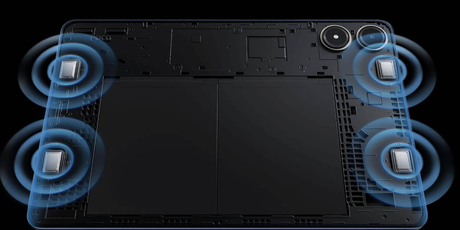 У кожному кутку планшета є динаміка з підтримкою Dolby Atmos і Hi-Res Audio, що забезпечує відмінну якість прослуховування. Тонкий металевий корпус вагою всього 571 грам доступний у двох кольорах: сірому та синьому.