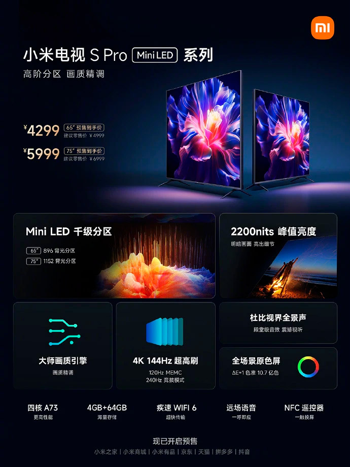 Що стосується цін, то 65-дюймова модель Xiaomi S Pro пропонується за стартовою ціною $665, тоді як 75-дюймова версія оцінена в $930. Обидва телевізори вже доступні для замовлення на китайських онлайн-майданчиках.